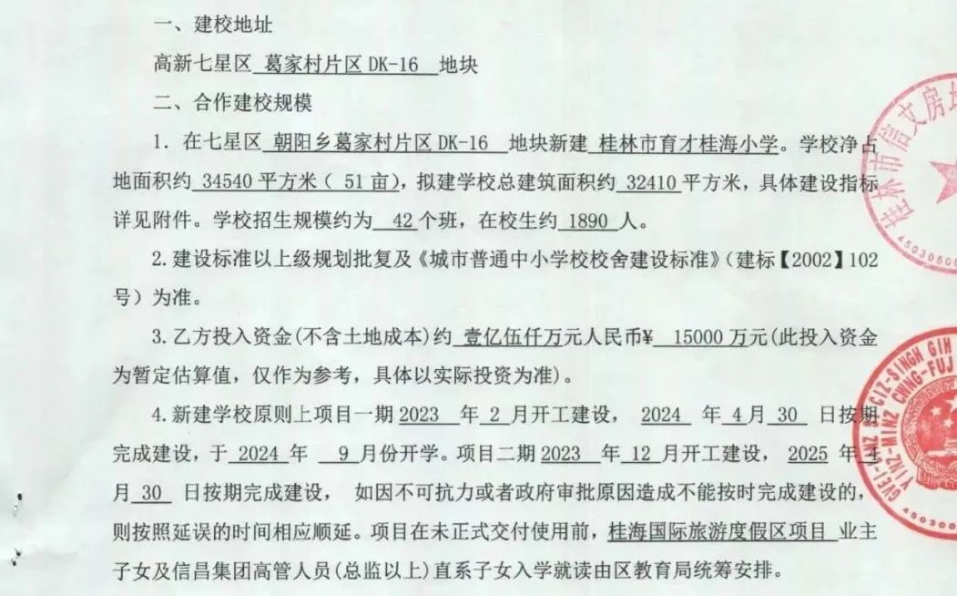 桂林市育才桂海小學(xué),由信昌集團(tuán)投資約1.5億新建市屬公辦小學(xué)。凈占地面積約 34540平方米( 51畝),總建筑面積約 32410平方米,計(jì)劃2023年2月開工建設(shè),于2024 年 9 月份開學(xué),招生規(guī)模約為42個(gè)班。屆時(shí)將成為桂林市首屈一指的公辦小學(xué),為七星區(qū)新增 1890 個(gè)優(yōu)質(zhì)學(xué)位。