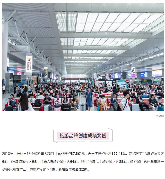 2018年,桂林接待游客數首次突破“億”人次大關,旅游總消費首次突破千億元