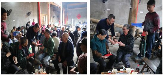 除夕前,當(dāng)大多數(shù)的員工都回家與家人團聚時,前期部的經(jīng)理賓澤藝卻還在董事長的帶領(lǐng)下為大碧頭村60歲以上的老人送溫暖、傳溫情,代表董事長給村民們發(fā)過年紅包。