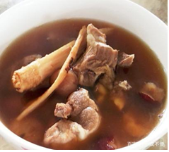 材料:脊骨500克、紅棗6顆、枸杞50克、黨參30克、黃芪50克、桂圓肉30克、干貝5粒、食鹽1茶匙。