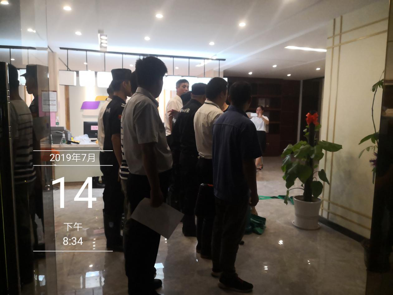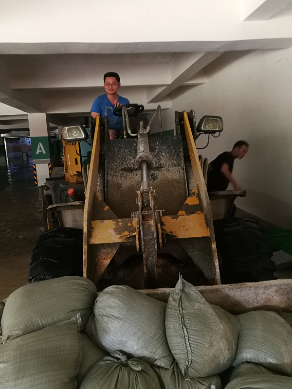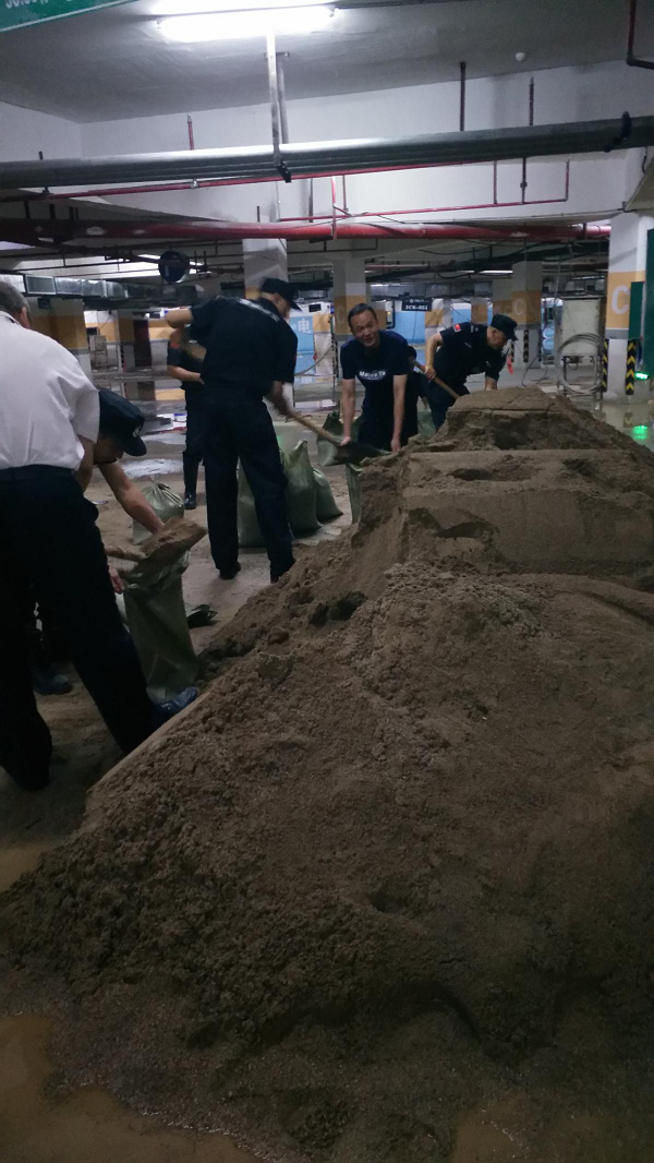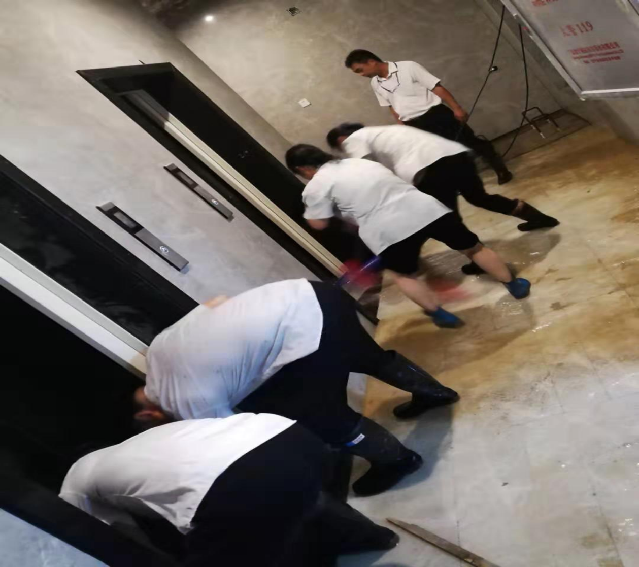 一小部分水進(jìn)入到負(fù)二層地下室,為防止雨水進(jìn)入電梯造成更大的損失,電梯公司停止了電梯的運(yùn)行,統(tǒng)一將電梯升至負(fù)一層,電梯底坑少量積水,為快速恢復(fù)電梯,在集團(tuán)公司領(lǐng)導(dǎo)快速響應(yīng)、指導(dǎo)下,2019年7月14日,棠棣之華項(xiàng)目部、物業(yè)公司、電梯公司日夜奮戰(zhàn)在第一線,調(diào)配能調(diào)動(dòng)的所有資源,扛沙袋、清垃圾、處理積水,一定要確保在7月14日恢復(fù)所有停運(yùn)的電梯,保障業(yè)主的正常出行!