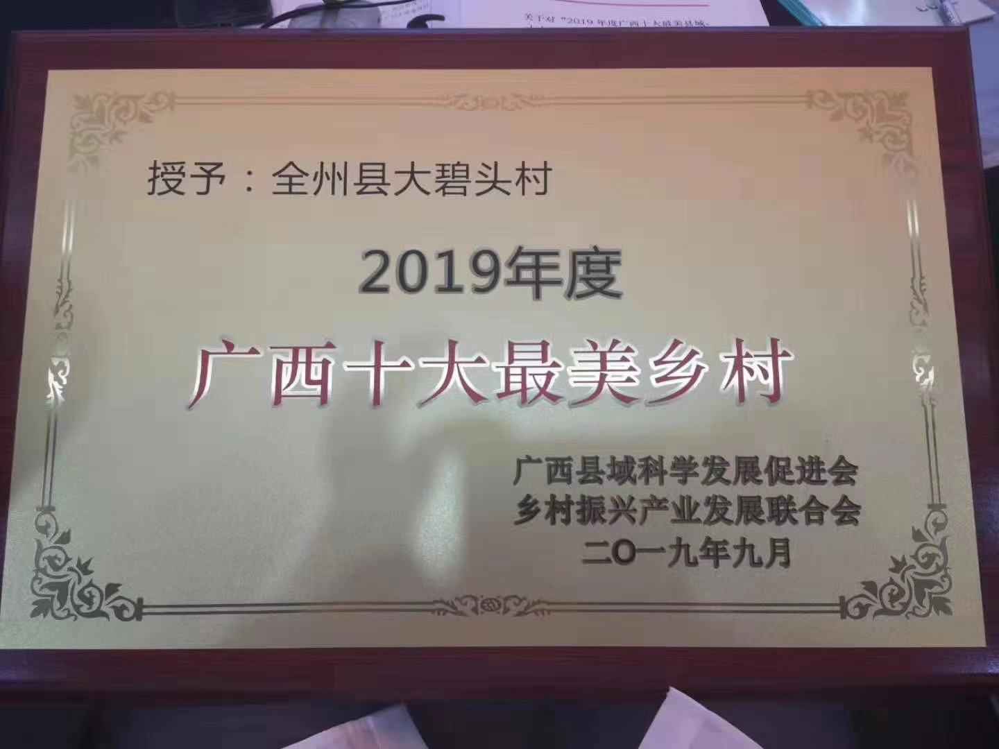 在2019年9月23日我們迎接屬于大碧頭的榮譽2019年度“廣西十大最美鄉(xiāng)村”之稱。美是各級領(lǐng)導(dǎo)、同事以及我們最美的村民攜手共創(chuàng)的,這份榮譽是大家有目共睹的。